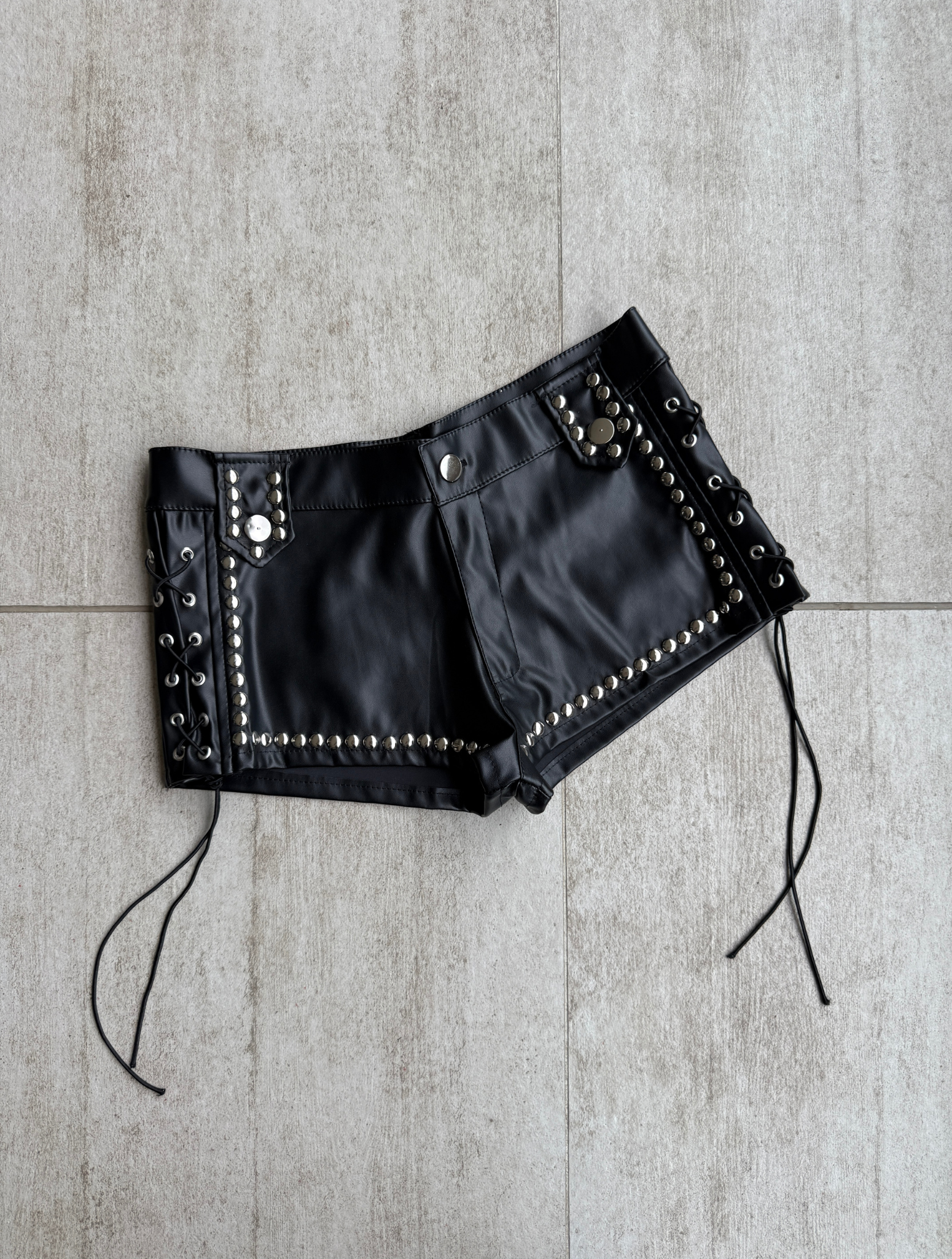 Mini short de cuerina con tachas de confección argentina, con un diseño versátil y moderno. Ideal para combinar en distintos estilos, desde looks urbanos hasta outfits nocturnos.